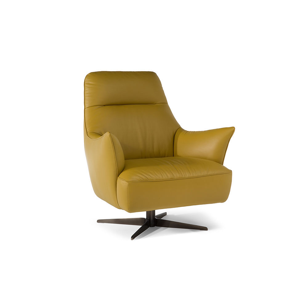 This armchair packs a real punch thanks to its unique design, which combines a generous seat with a backrest to create a feel of calm and comfort. A practical swivel base facilitates movement and helps the piece adapt to any user need. This sleek Natuzzi Editions armchair is the perfect addition to any living area.