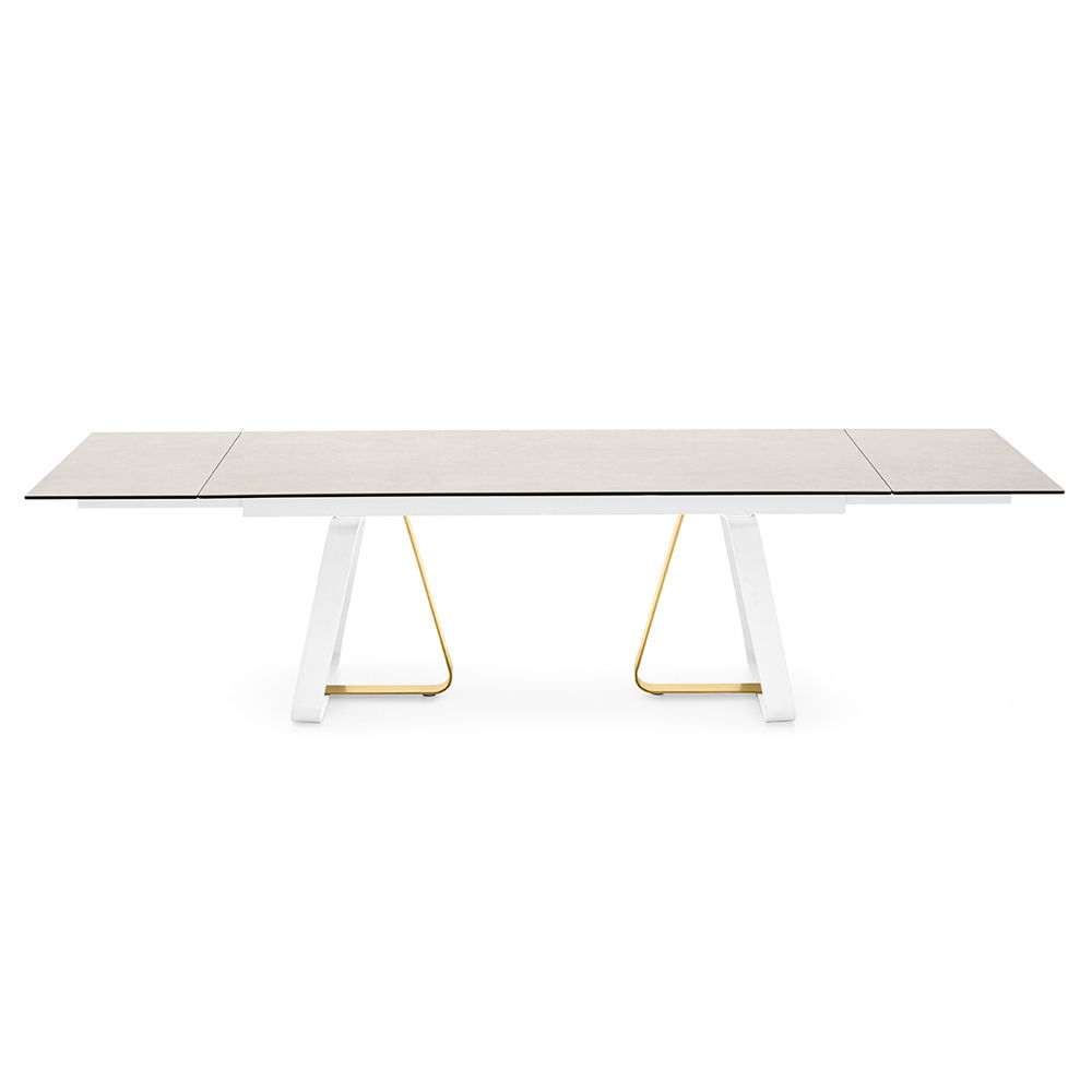 The Sunshine Extension Table is designed by Archirivolto in partnership with Calligaris. This table features a pared back silhouette finished in elegant metals and high-end ceramic tops. Match or contrast Sunshine’s base metals in a handful of metallic finishes. Enjoy all the visuals of marble or stone options via the durable characteristics of ceramic with the Sunshine. Sunshine’s twin leaves glide easily into place and may be concealed within the table via the same smooth extension mechanism.